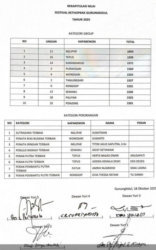 Festival Kethoprak Kapanewon Tepus Menyabet Juara II Penyaji Terbaik Dan 2 Penghargaan Perorangan