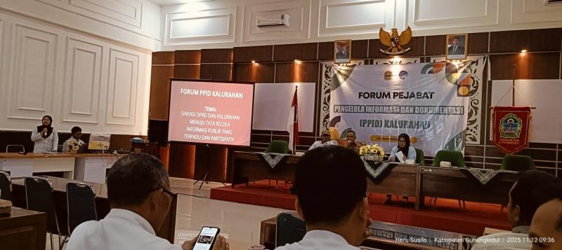 Sidoharjo (SIDA) - Dinas Komunikasi dan Informatika (Kominfo) Kabupaten Gunungkidul menyelenggarakan Rapat Koordinasi Forum Pejabat Pengelola Informasi dan Dokumentasi (PPID) Kalurahan se-Kabupaten Gunungkidul Tahun 2025. Acara yang mengusung tema “Sinergi DPRD dan Kalurahan Menuju Tata Kelola Informasi Publik yang Terpadu dan Partisipatif” ini berlangsung pada Rabu, 12 November 2025, di Gedung Dinas Perpustakaan dan Kearsipan Kabupaten Gunungkidul.
