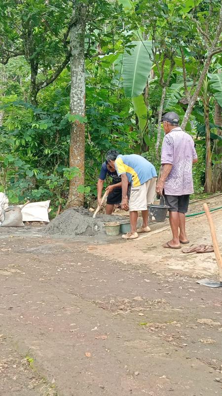 Sejak pagi, warga sudah berkumpul membawa berbagai perlengkapan kerja seperti cangkul, sekop, dan peralatan pendukung lainnya. Proses perbaikan dilakukan secara bergotong royong, dimulai dari pembersihan area yang rusak, pengadukan bahan, hingga pengecoran kembali permukaan jalan agar lebih rata, kuat, dan layak dilalui.