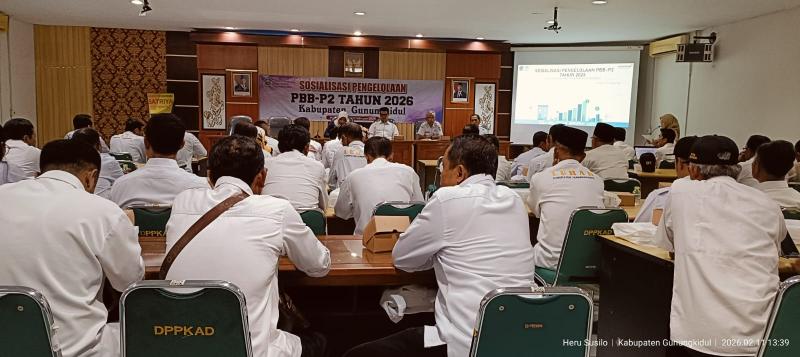 Sidoharjo (SIDA) - Badan Keuangan dan Aset Daerah (BKAD) Kabupaten Gunungkidul telah menyelenggarakan Sosialisasi Pengelolaan Pajak Bumi dan Bangunan Perdesaan dan Perkotaan (PBB-P2) Tahun 2026. Acara yang berlangsung di RR III BKAD ini dihadiri oleh seluruh pemangku kepentingan kunci dalam proses pemungutan PBB-P2 di wilayah Kabupaten Gunungkidul.