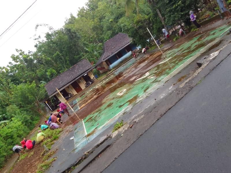 Warga RT 04 Klepu Bersihkan Lapangan Voli dalam Kegiatan Jumat Kliwon Bersih