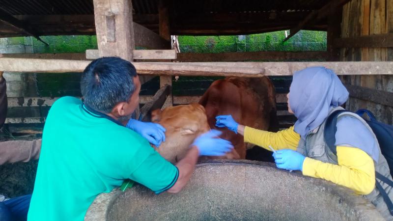 Petugas dari Puskeswan bersama tim terkait melakukan pemeriksaan kesehatan hewan secara menyeluruh, meliputi pengecekan kondisi fisik, pemeriksaan mulut dan kuku, serta pemantauan suhu tubuh ternak. Selain itu, hewan ternak yang memenuhi syarat juga diberikan vaksin PMK guna meningkatkan kekebalan dan mencegah penyebaran penyakit.