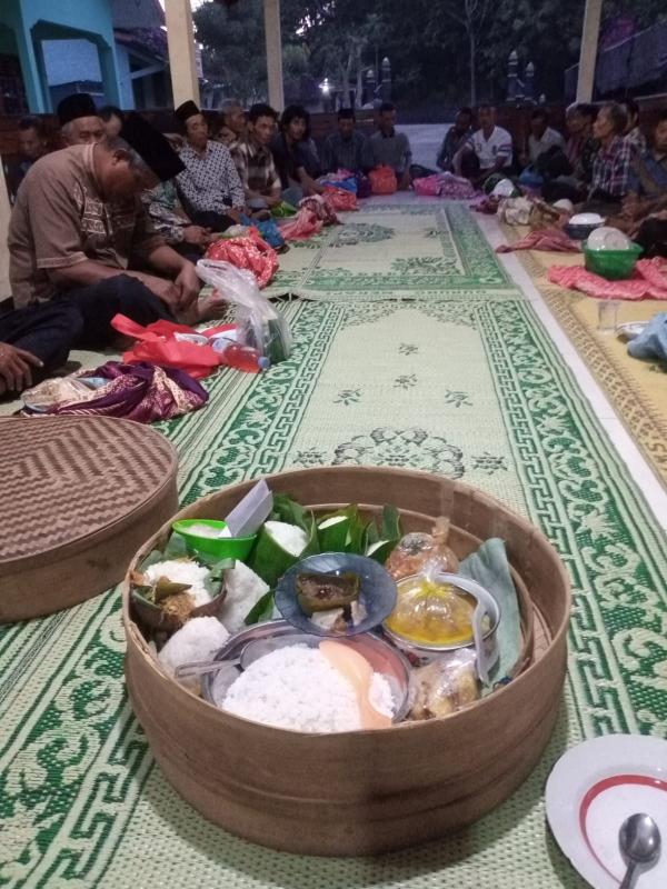 Dalam kegiatan tersebut, warga membawa berbagai hidangan dari rumah masing-masing yang kemudian dikumpulkan dan didoakan bersama. Setelah doa bersama selesai dilaksanakan, makanan yang telah disiapkan kemudian dinikmati bersama oleh seluruh warga yang hadir.