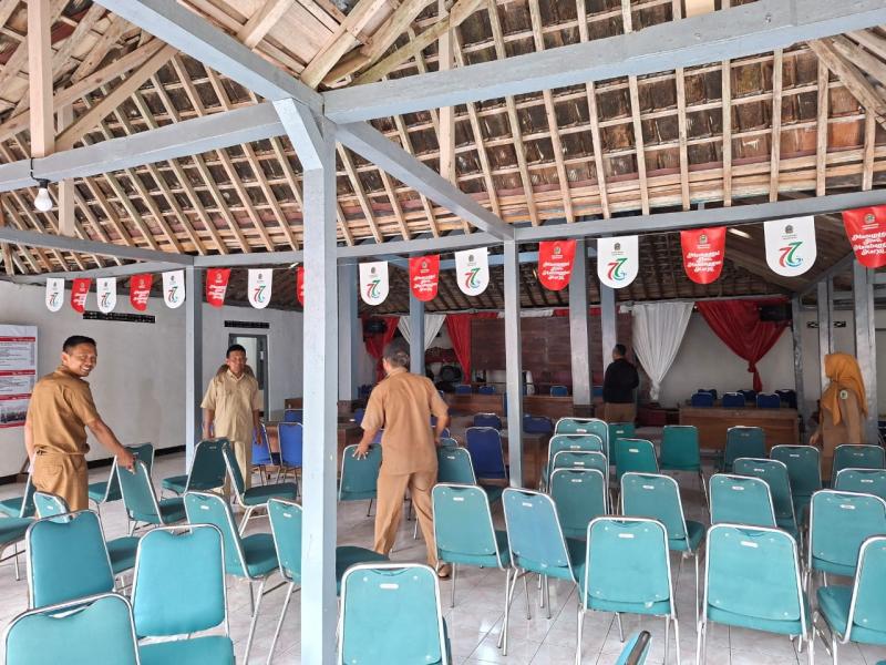 Guna memastikan kegiatan berjalan dengan lancar, pada Selasa (31/3/2026) seluruh pamong kalurahan, staf, serta Tenaga Harian Lepas (THL) melaksanakan berbagai persiapan. Kegiatan persiapan meliputi penataan tempat, kebersihan lingkungan, serta kelengkapan sarana dan prasarana pendukung acara.