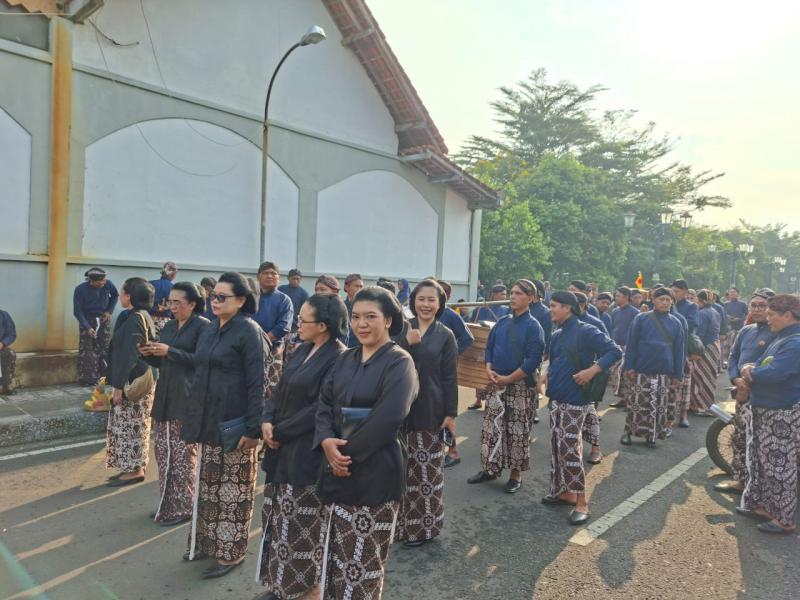 Kenakan Busana Adat Jogja, Pamong Sidoharjo Ikuti Kirab Mangayubagyo HB X