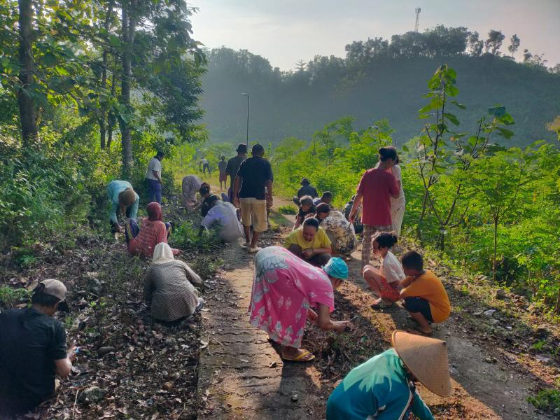 Sejak pagi hari, warga telah berkumpul dan bergotong royong membersihkan area sepanjang jalan lingkungan. Dengan menggunakan alat sederhana, warga mencabuti rumput liar, membersihkan semak-semak, serta merapikan sisi jalan agar tampak bersih dan tertata.