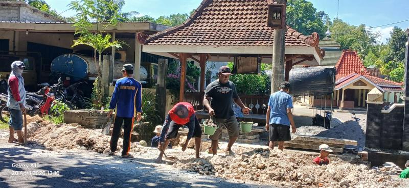 Kegiatan gotong royong ini diikuti oleh masyarakat setempat dengan penuh semangat kebersamaan. Terlihat warga bahu-membahu melakukan pekerjaan mulai dari penggalian, pengangkutan material, hingga penataan saluran drainase di sepanjang wilayah padukuhan.